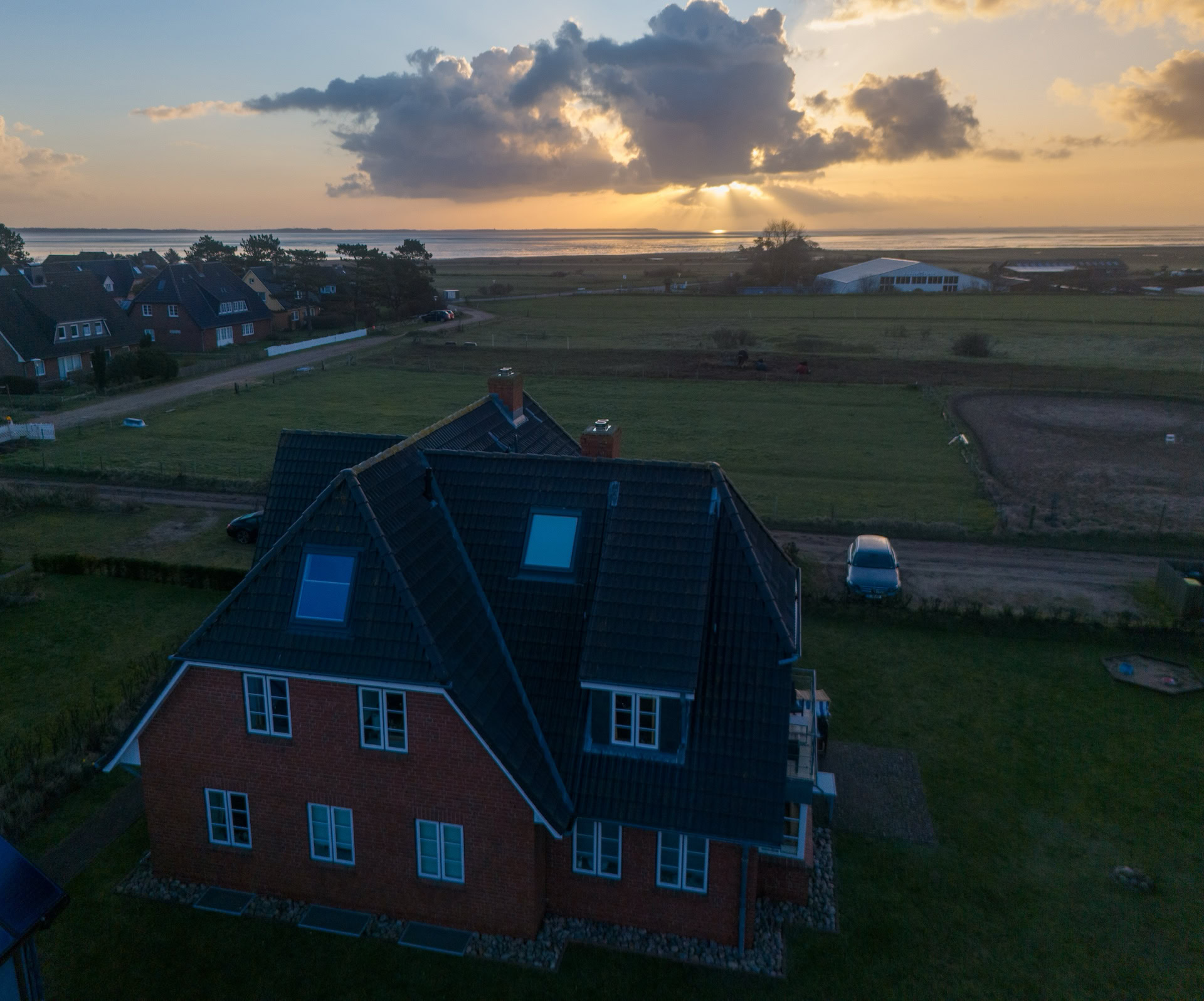 Geniessen Sie unseren unverbauten Panoramablick über das Wattenmeer bis nach Föhr und den Halligen, über Wald und Wiesen bis nach Wittdün. Ruhig in Norddorf gelegen und trotzdem nur 3 Minuten Gehweg zum Zentrum mit Bäcker, Lebensmittelladen und einer netten Auswahl an Cafés und Restaurants. Zum Badestrand fahren Sie mit dem Fahrrad 5 Minuten.